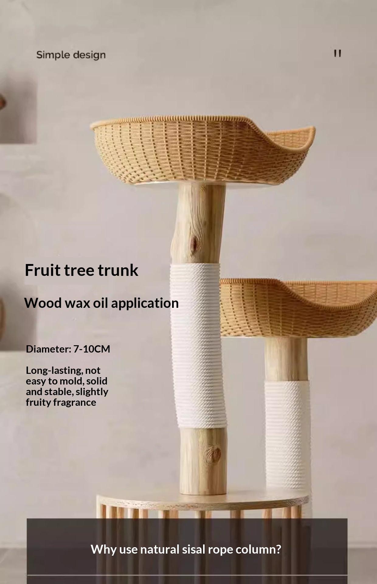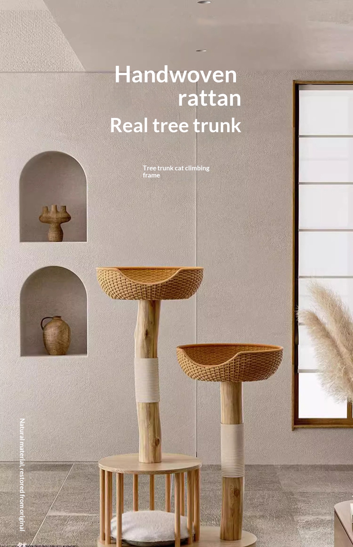 Style: Straight-grained pine main trunk for cat tree, fully sisal-covered curved fruit tree trunk for cat tree, with partial sisal sections