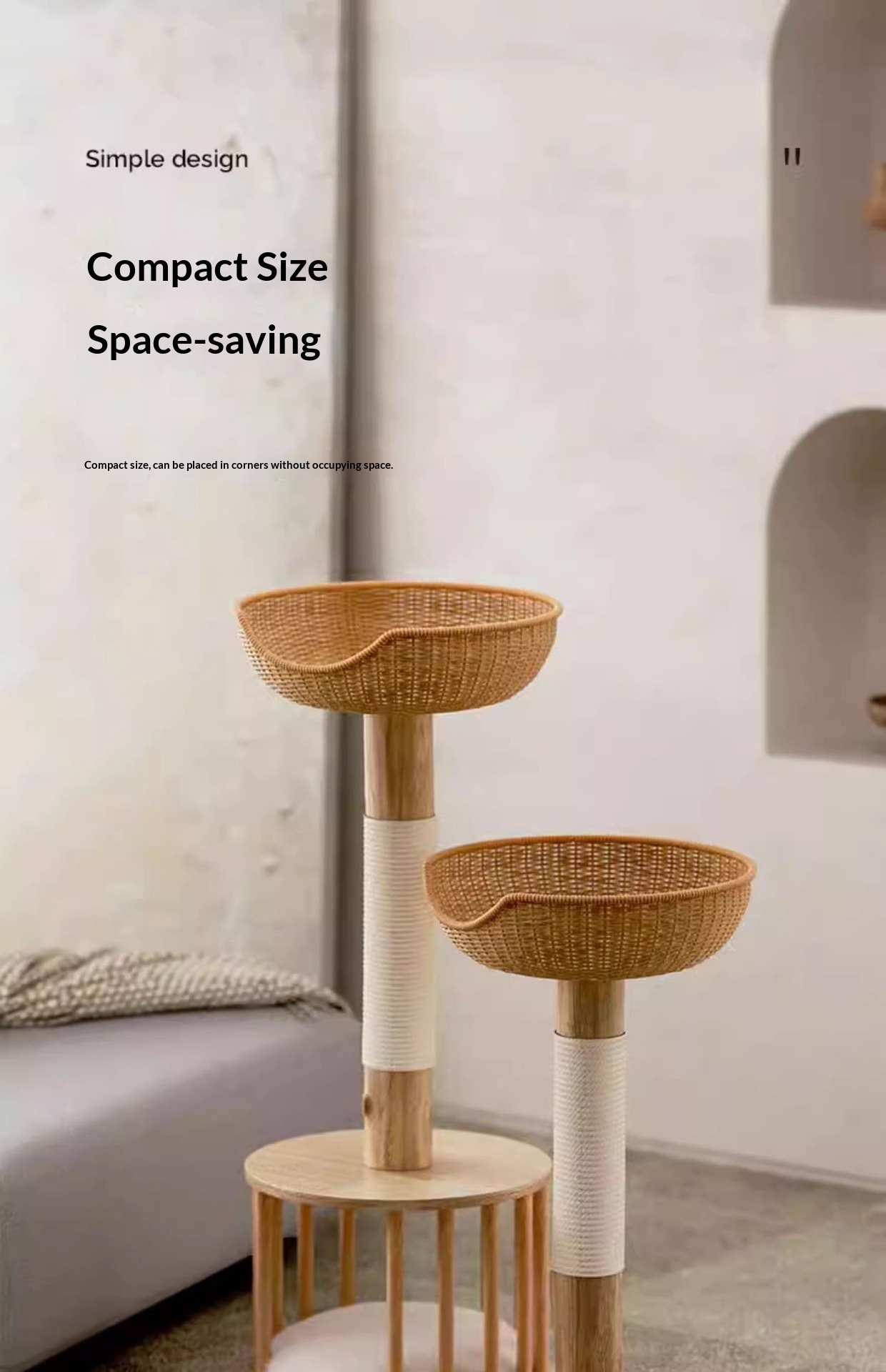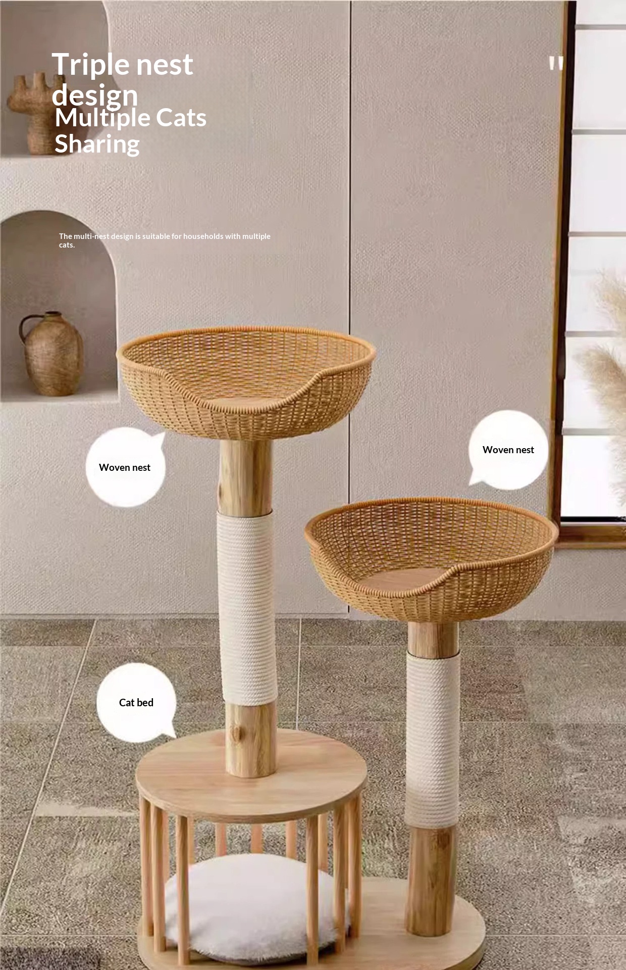 Solid Wood Cat Climbing Frame, Cat Tree, And Cat Bed All-in-one